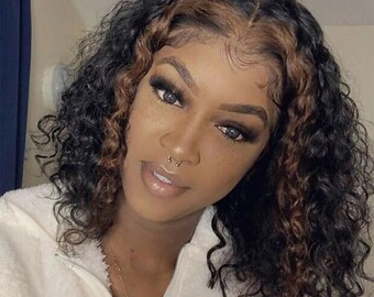 4 27 Deep Wave Lace Front Wigs Human Hair Ombre Strawberry Brown Highlights Curly Human Hair Wig Brazilian Virgin Hair 13x1x4 Lace Wig For Women Pre Plucked Hairline 18 Water Wave Ombre Colored Wigs